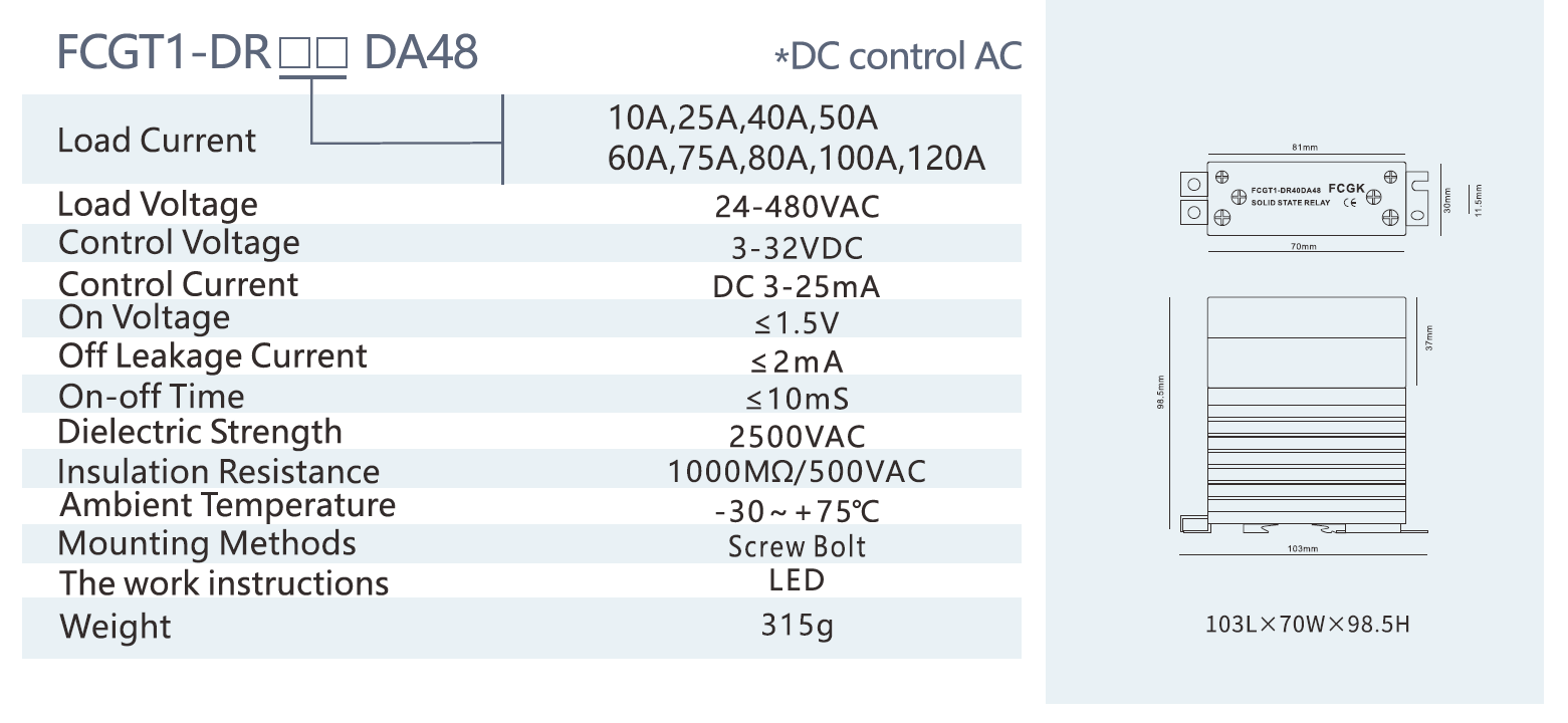 FCGT1-DR☐☐AA48 : Single-phase solid state relay