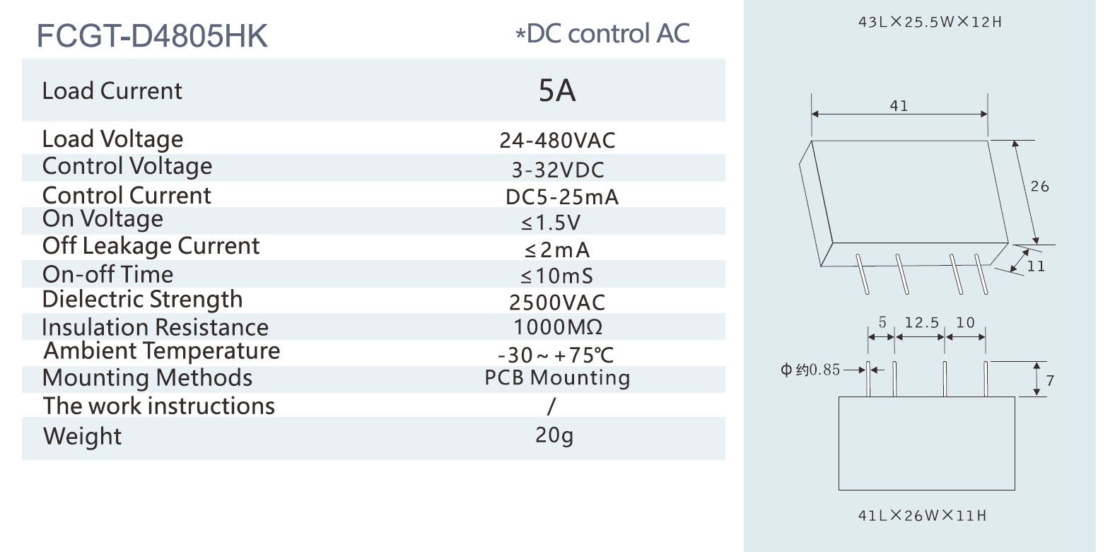 FCGT-D4805HK : PCB solid state relay