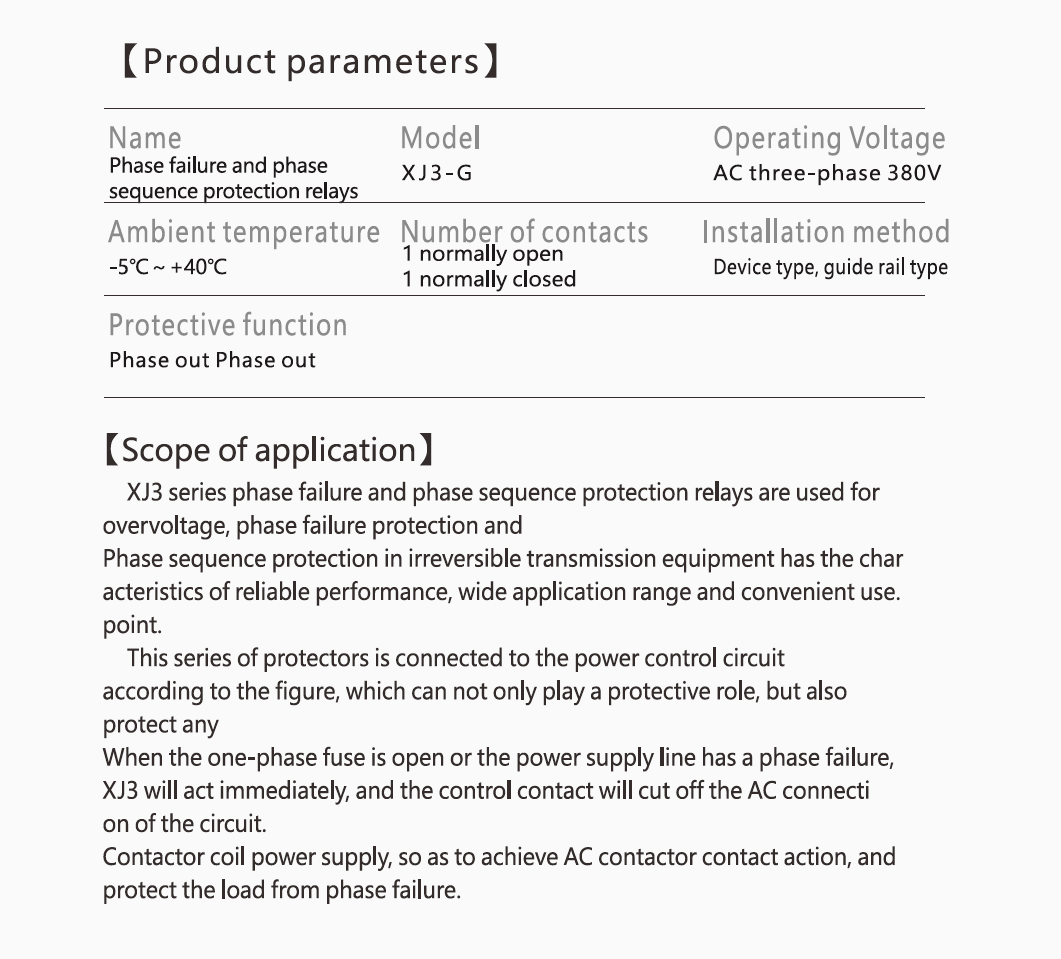 XJ3 series phase failure and phase sequence protection relays are used for overvoltage, phase failure protection and