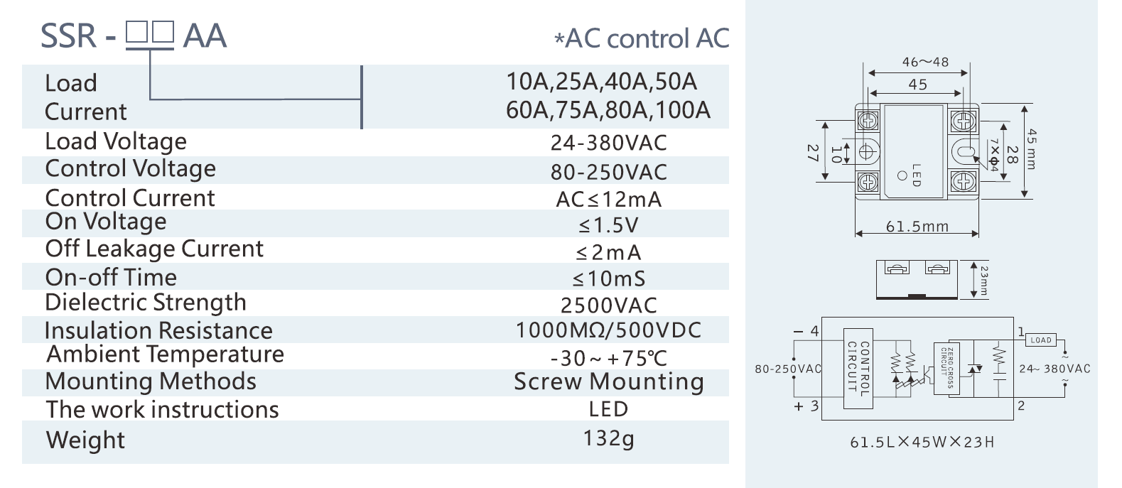 SSR-☐☐AA-H : Single-phase solid state relay